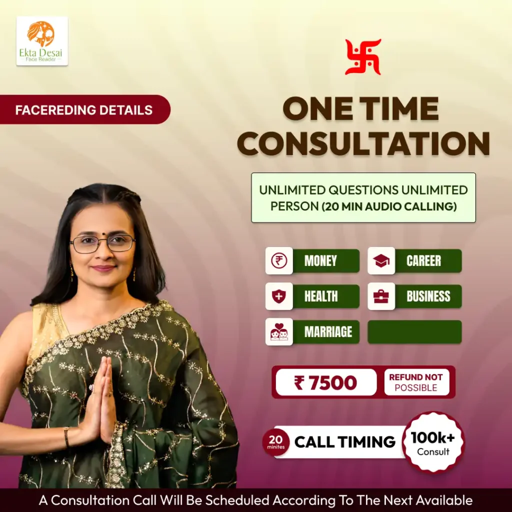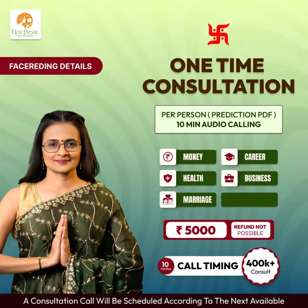 Accuracy depends on photo clarity and professional experience. With over 12 years of face reading practice, Ekta Desai provides structured, experience-based analysis that clients use for decision clarity, not blind predictions.
